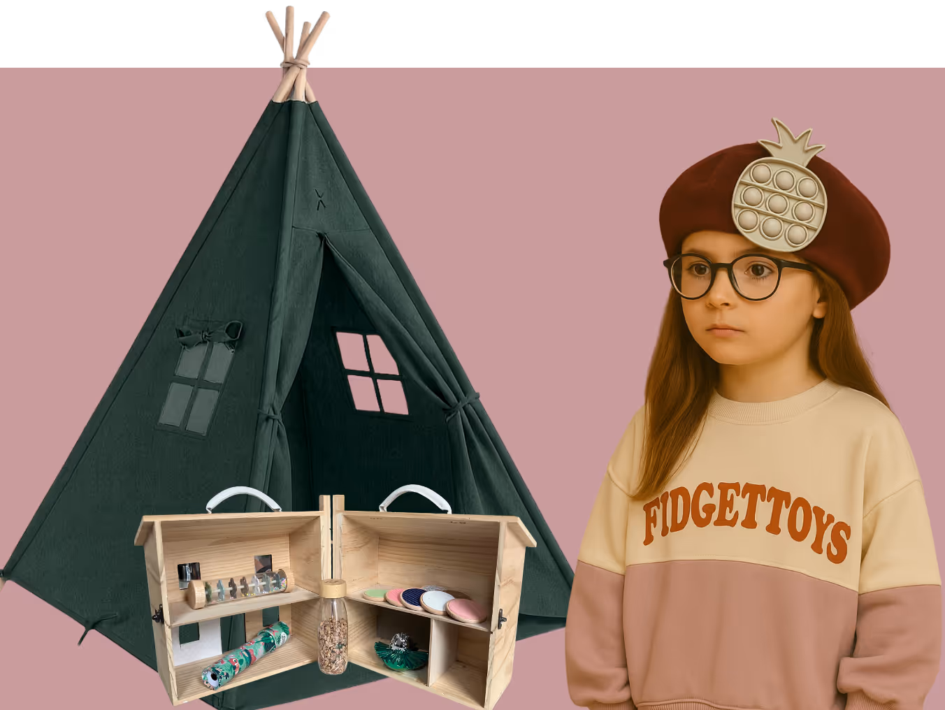 Speelstation: Kasa-klodder is de rustige plek waar verschillende fidgettoys te vinden zijn. Deze helpen bij stress-angstvermindering, voor sensorische simulatie , zelfregulatie, ontprikkelen en voor de fijne motoriek.