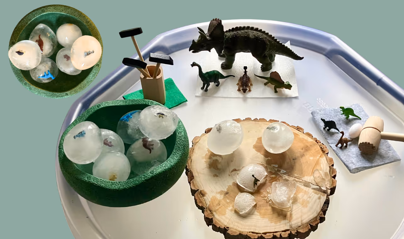Speelstation: Dinosaurussen uit bevroren eieren hakken.