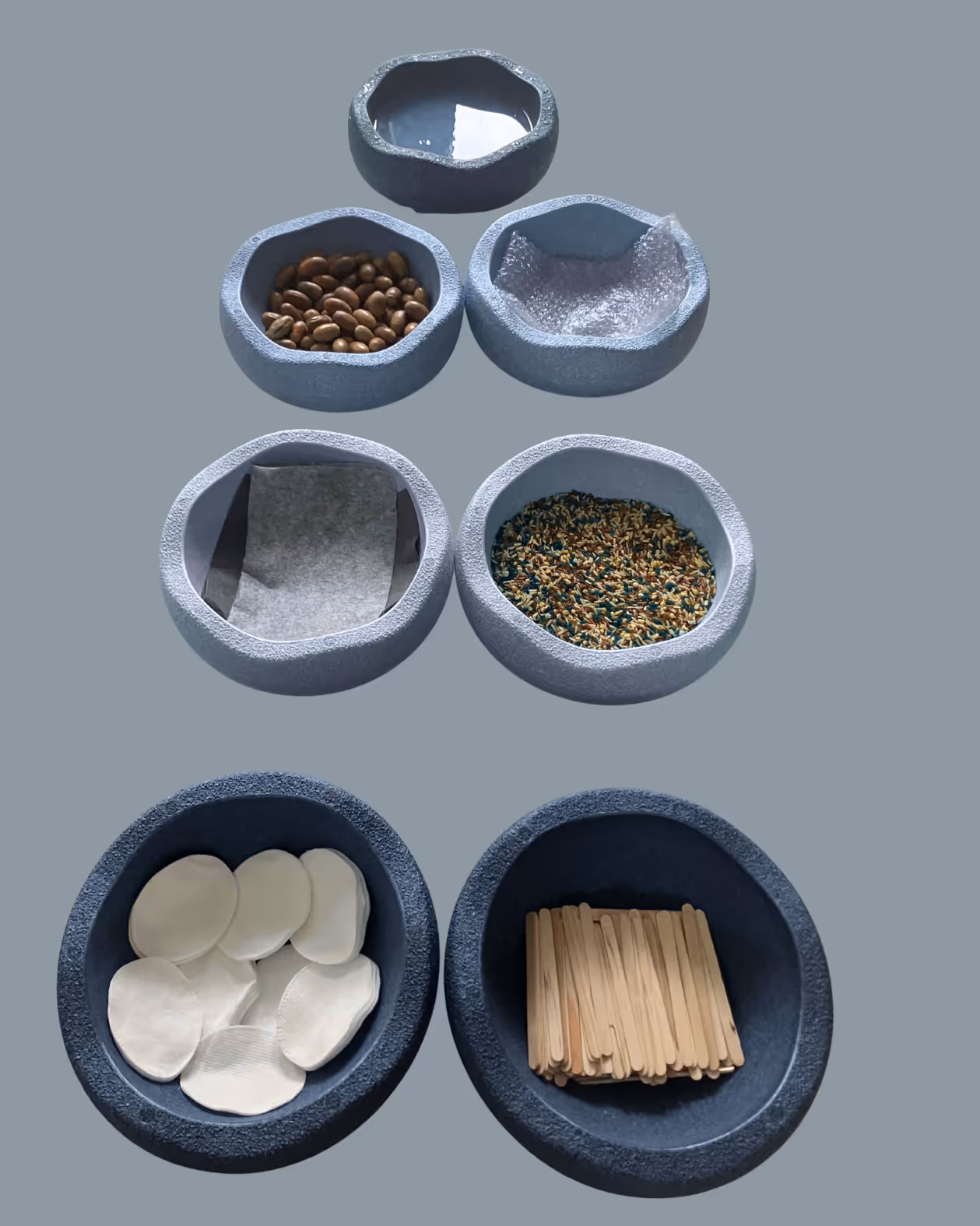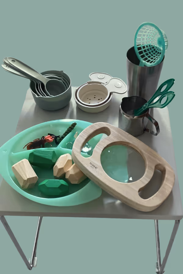 Ontdek onze speelstations gevuld met materialen om mee te experimenteren. De kits zijn gevuld met allerlei materialen om te ontdekken. Droge materialen zoals rijst, linzen, pasta, pom-poms. Half-plakkerige materialen zoals kinetisch zand, schelpenzand, pluffle. Natte-plakkerige materialen zoals scheerschuim, water, modder. Daarnaast is er een constructie-hoek, een fidgetstation en kunstzinnige activiteiten.